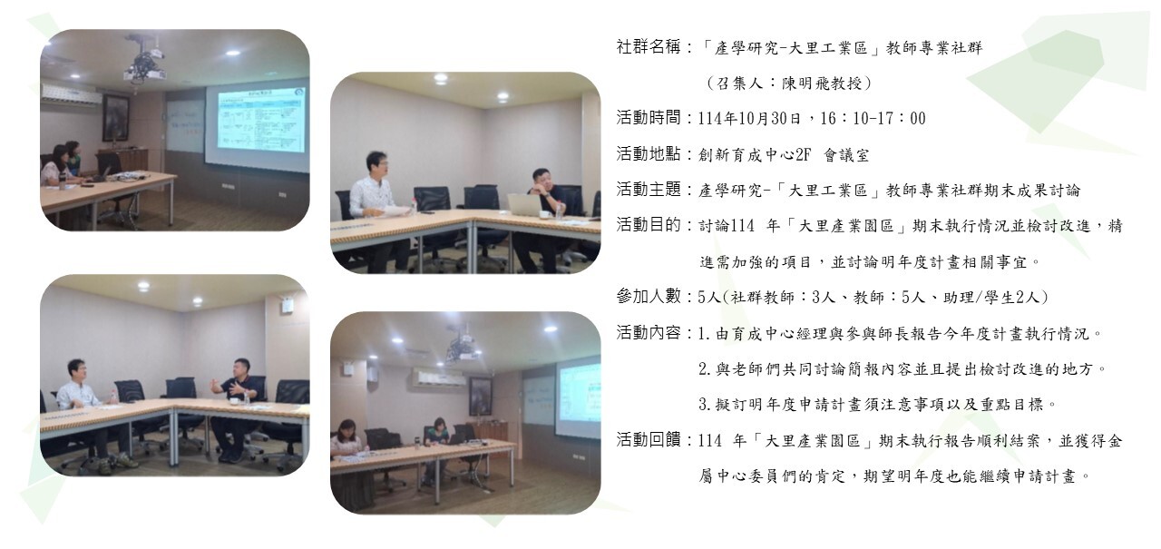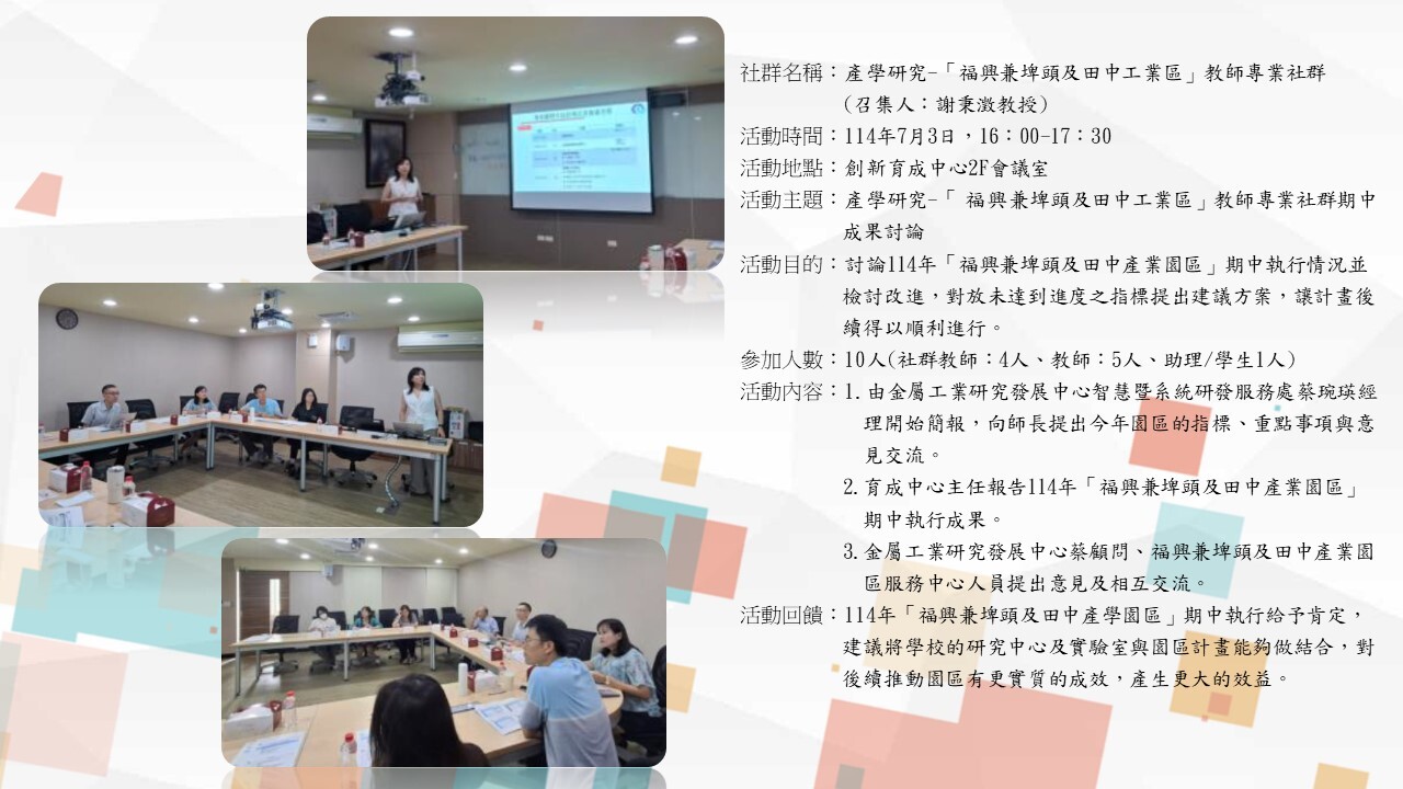 | 14 | 產學研究-大里工業區 | 陳明飛 校長 | 1 114/7/3 |