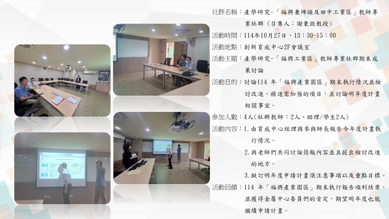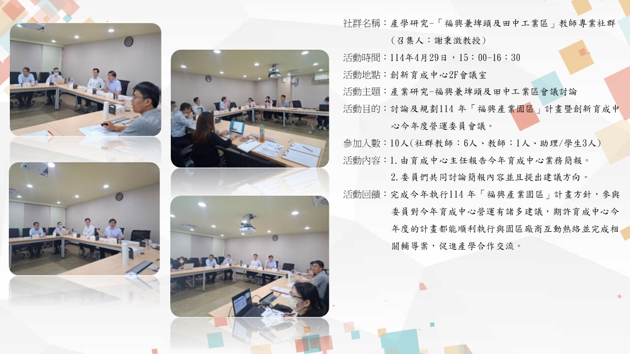 | 13 | 產業研究-福興兼埤頭及田中工業區 | 謝秉澂 主任 | 1 114/4/29 |