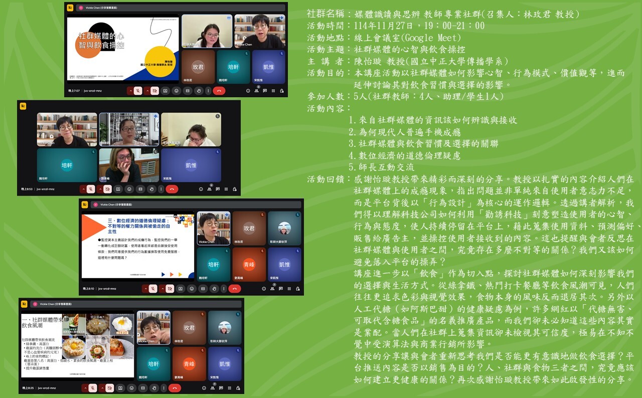 | 6 | 媒體識讀與思辨 | 林玫君 主任 | 1 114/9/30 |
