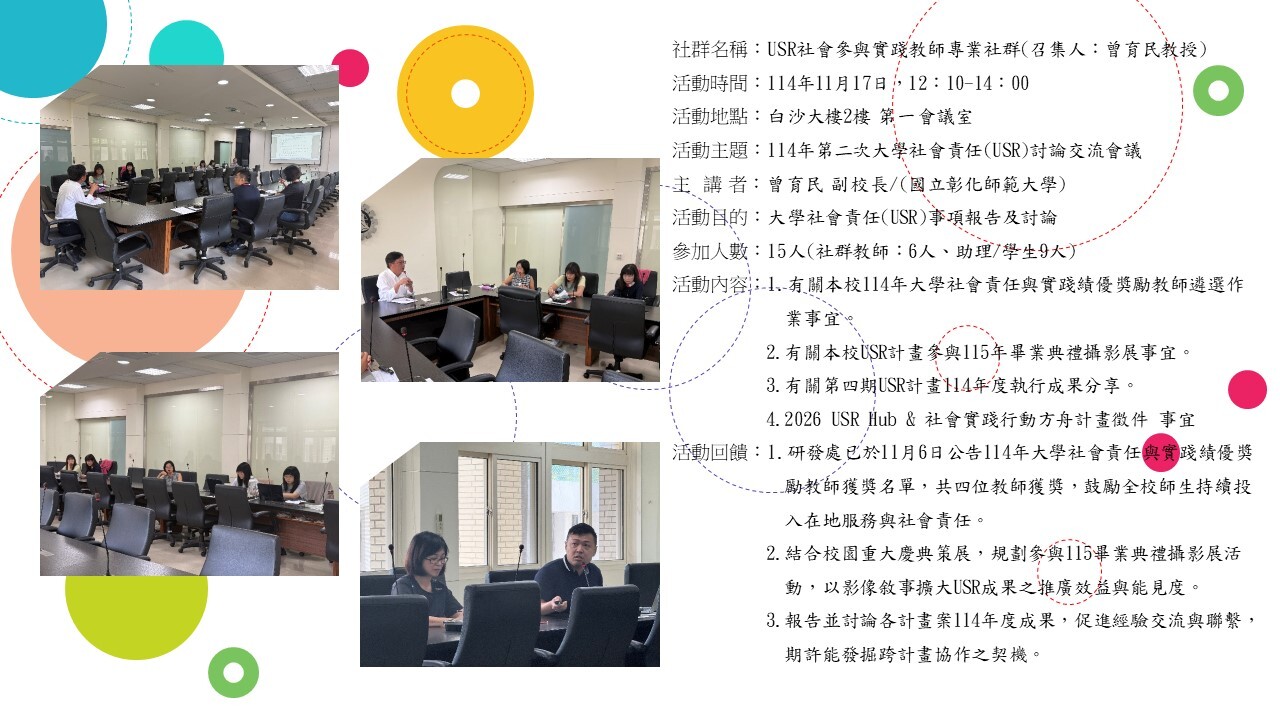 | 11 | USR社會參與實踐 | 曾育民 副校長 | 1 114/7/2 |