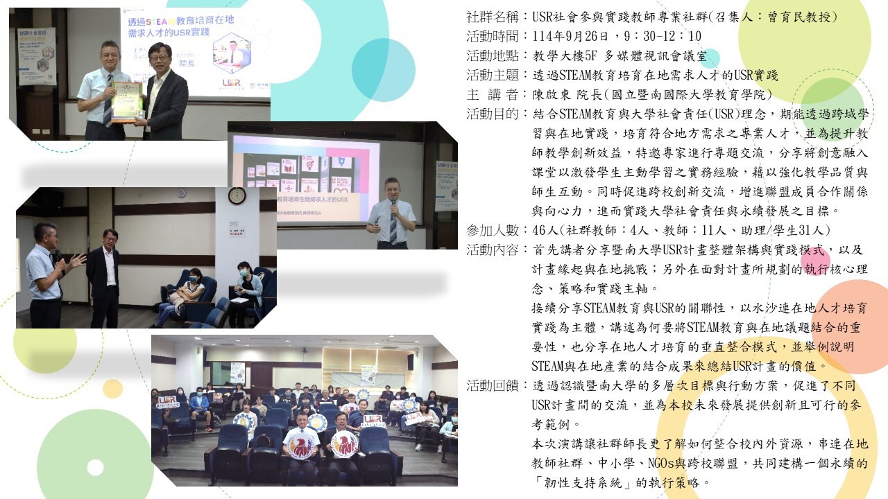 | 11 | USR社會參與實踐 | 曾育民 副校長 | 1 114/7/2 |
