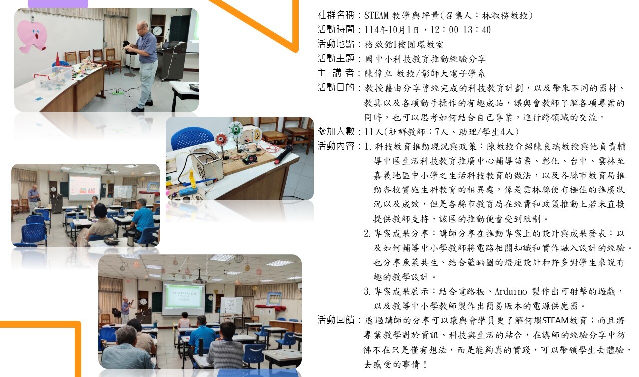 | 8 | STEAM教學與評量 | 林淑梤 教授 | 1 114/4/9 |