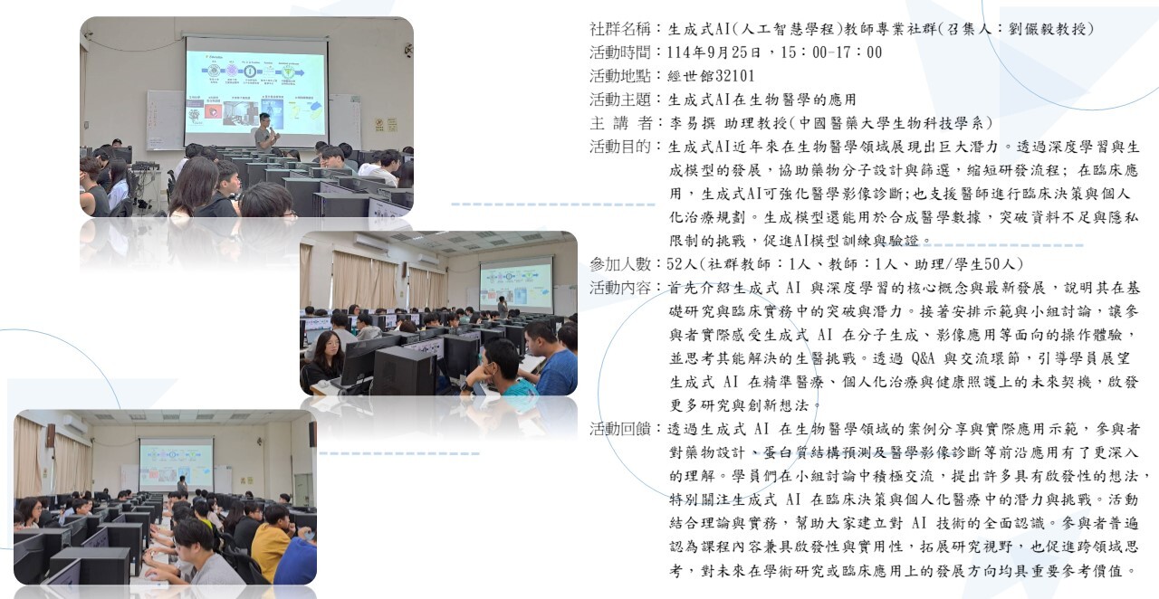 | 10 | 生成式AI(人工智慧學程) | 劉儼毅 教授 | 1 114/5/27 |