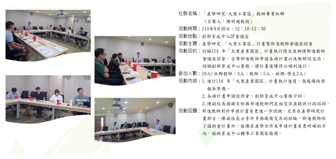 | 14 | 產學研究-大里工業區 | 陳明飛 校長 | 1 114/7/3 |